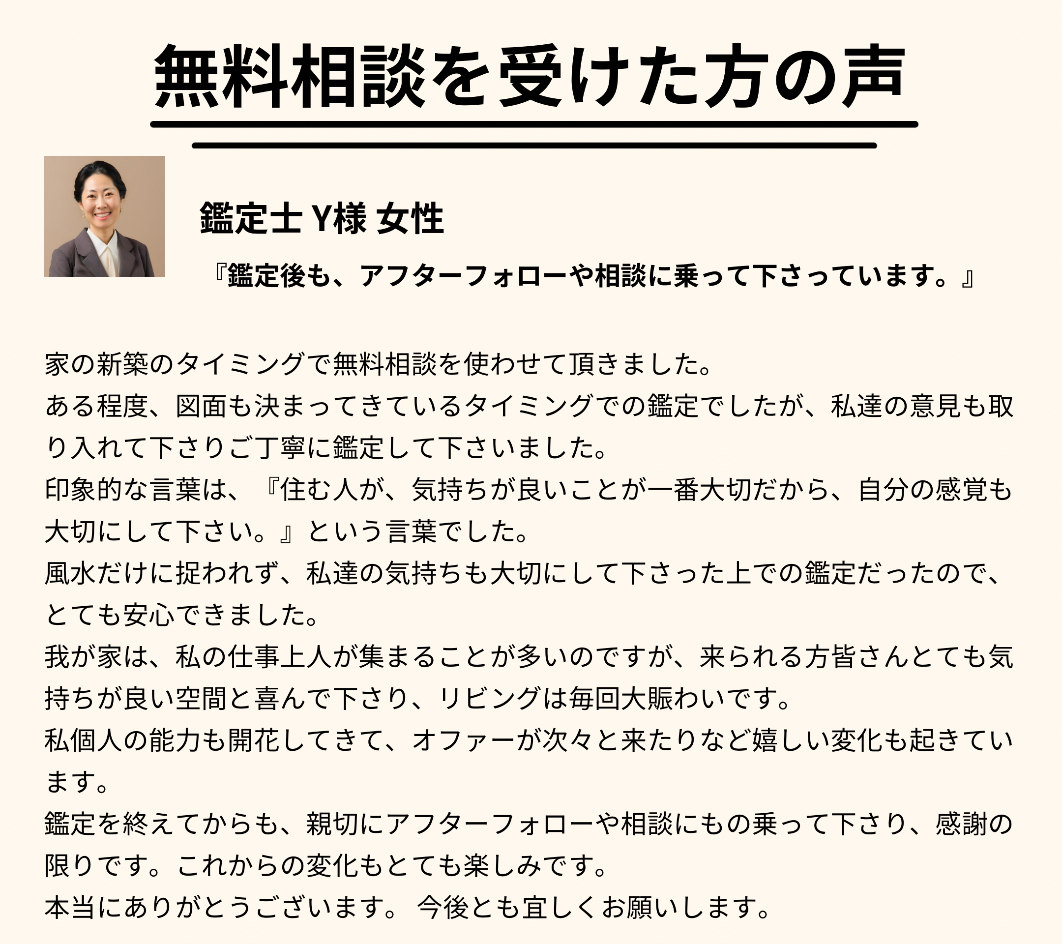 長い業界経験からの知識とコネクションによってのみ知り得る豊富な物件の情報を元に、風水の方位も加味した物件を見つけてくることが出来ます。煩わしい物件を探す手間は掛かりません。風水の効果も説明しますので、選ばれた物件の中から最適なものを選択するだけになります。