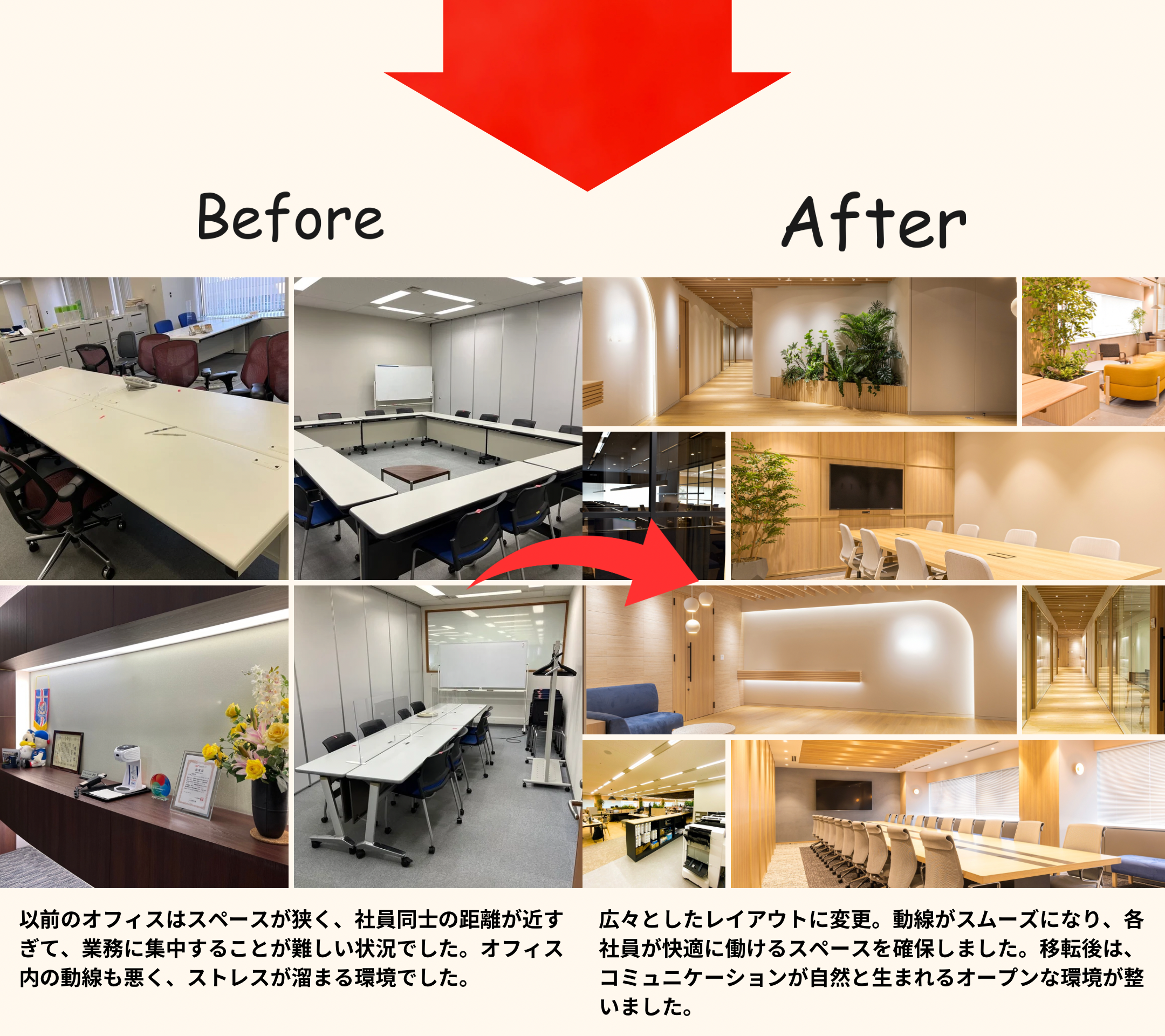 そんなお悩みに対し、働く人が前向きに行動できるようなオフィス空間を心理デザインしました。改装後、『会社全体が活気ある雰囲気に変わり、積極的にアイデアを出す社員が増えた』というお言葉を頂きました。