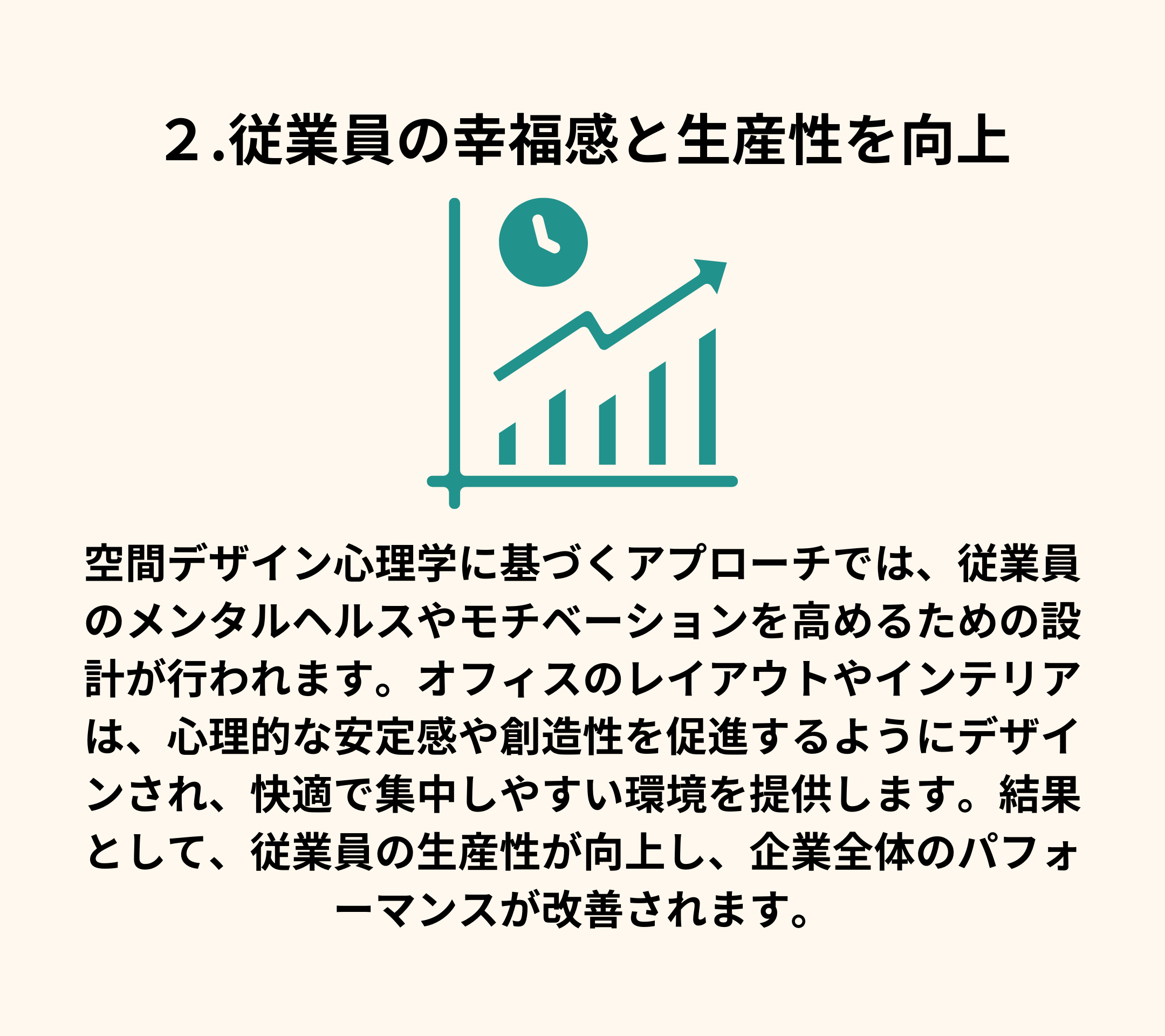 そんなお悩みに対し、働く人が前向きに行動できるようなオフィス空間を心理デザインしました。改装後、『会社全体が活気ある雰囲気に変わり、積極的にアイデアを出す社員が増えた』というお言葉を頂きました。